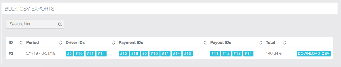 › With period filter: only rides paid by credit card within the time period will be aggregated and notified as payout in progress to the drivers.