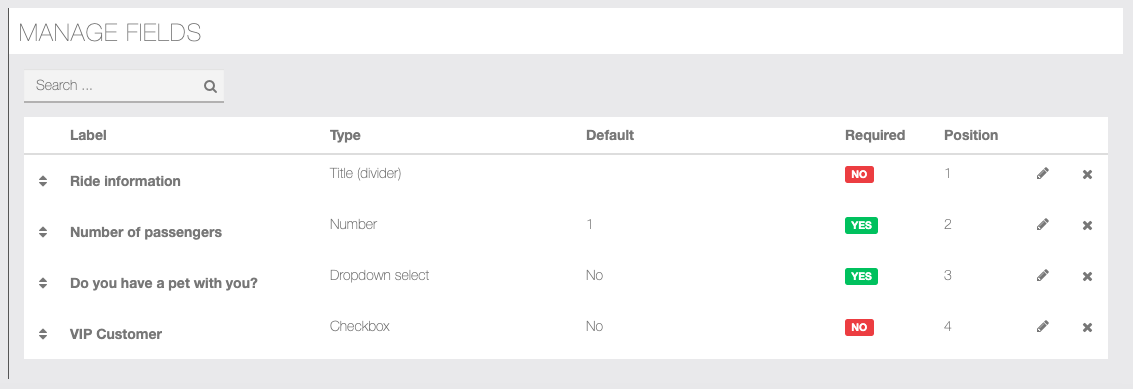 From this section you can create a custom form that will be displayed to the passengers when they request for a ride.