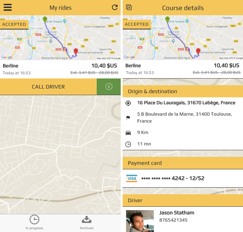 › At this step, the passenger can make a phone call to the driver if needed, or see more details