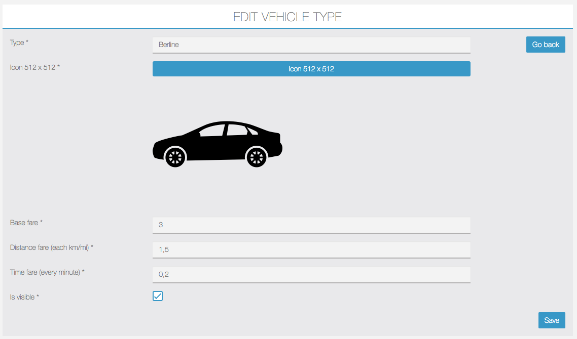 › Fares are required only when Pricing mode is set to Fixed by vehicle type.